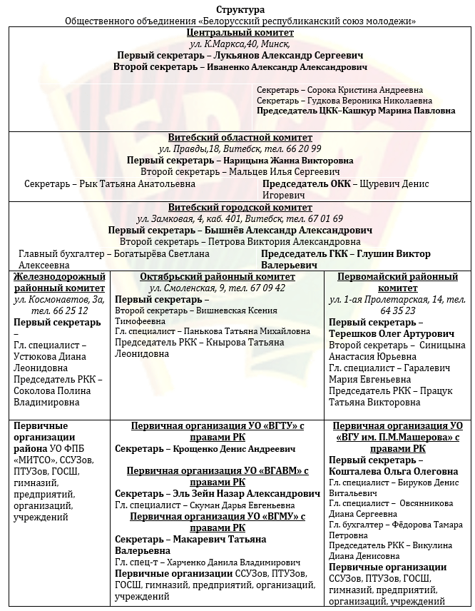 Состав комитета (актива) первичной организации ОО «БРСМ»: