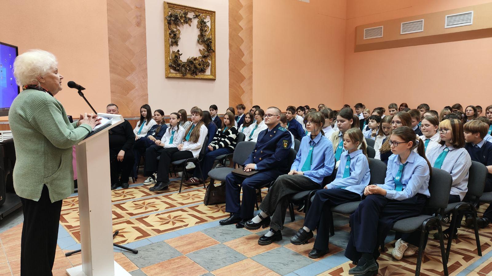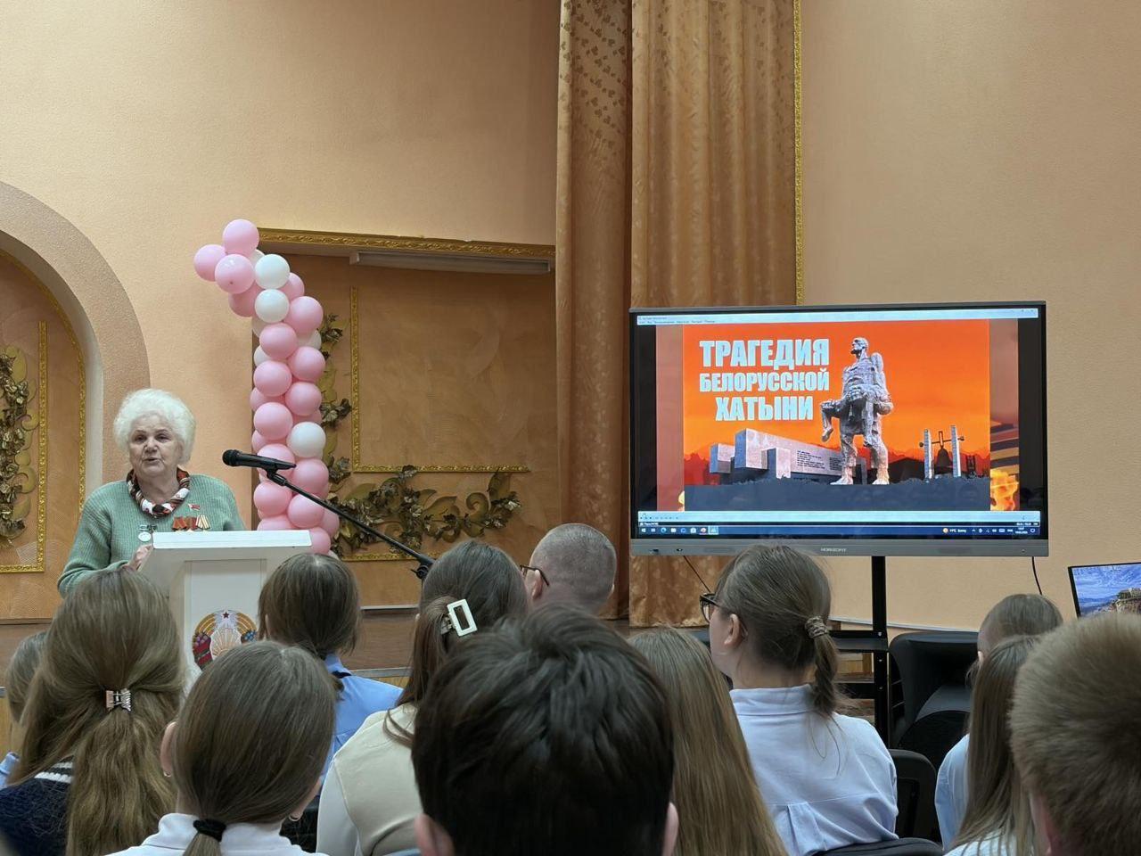 🪖Перед учащимися выступила председатель общественной организации «Малолетних узников фашистских концлагерей» Октябрьского района г. Витебска Н.Ф. Гракова , которая поделилась воспоминаниями и фактами о зверствах фашистов.