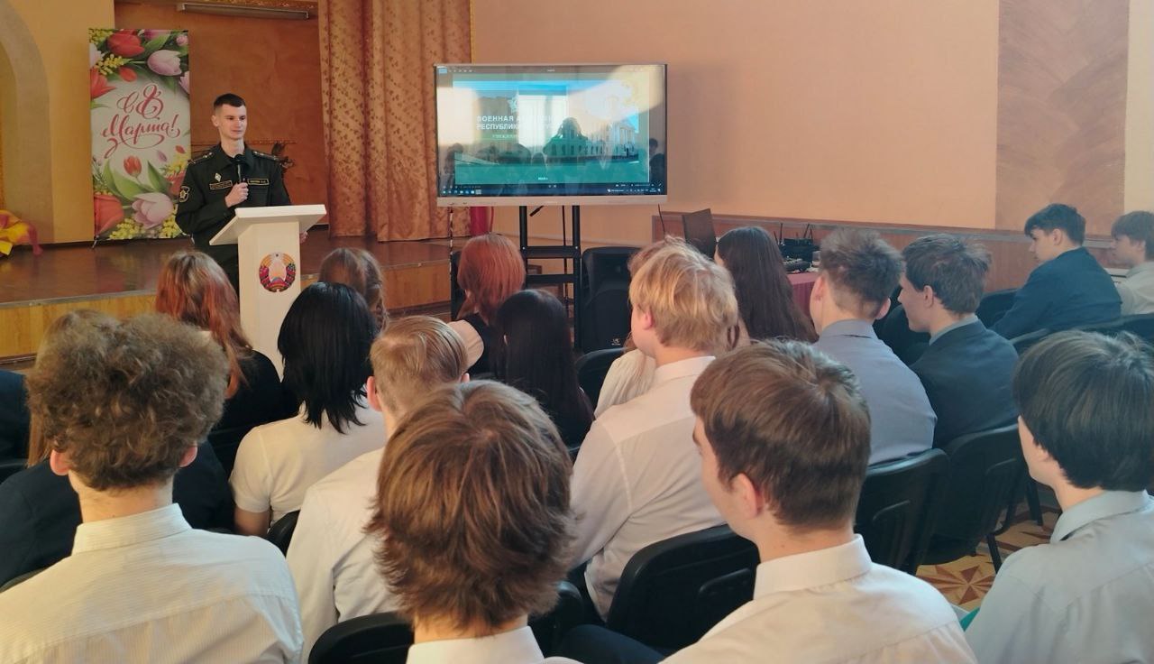 Особый интерес у ребят вызвала информация о порядке поступления в Военную академию Республики Беларусь. Представитель комиссариата подробно рассказал будущим абитуриентам об особенностях учебного процесса, условиях проживания курсантов и тех возможностях, которые открывает перед молодыми людьми обучение в главном военном вузе страны.