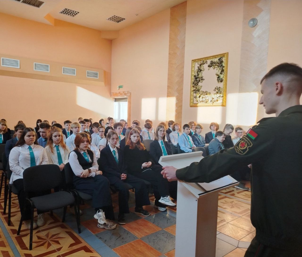В ходе открытого диалога со старшеклассниками были подняты ключевые вопросы, касающиеся прохождения воинской службы в Вооружённых силах Республики Беларусь.