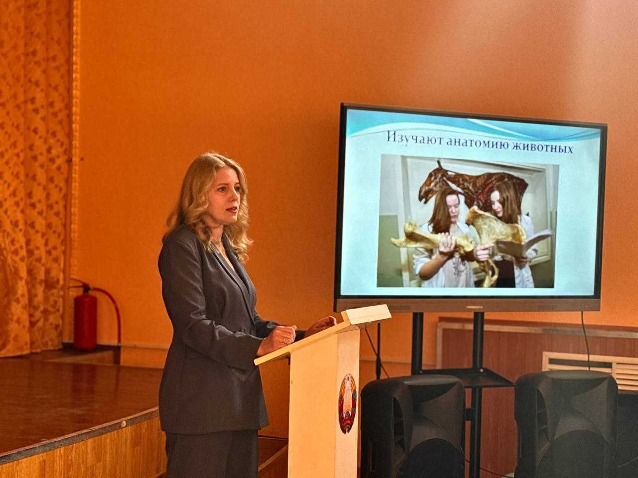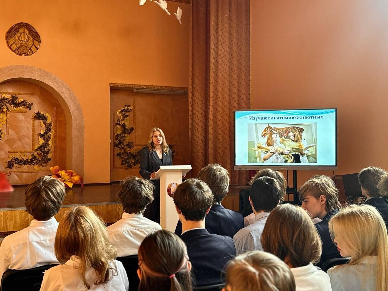 Гостья подробно рассказала ребятам об одном из старейших и авторитетнейших аграрных вузов Беларуси. Академия славится своими традициями и высоким уровнем подготовки специалистов. Ольга Викторовна познакомила школьников со спецификой работы ветеринарного врача, а также с особенностями обучения на кафедре гигиены животных.